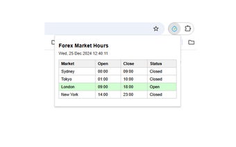 Forex Market Hoursis a free program for Chrome, that makes part of the category 'Add-ons & Tools'.